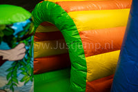 Stap binnen in de wondere wereld van de jungle met ons vrolijke Aapjungle springkussen! Dit kleurrijke springkussen met een grote lachende aap, tropische details én een gave glijbaan is dé attractie voor elk kinderfeest, buurtfeest of evenement.