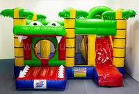 Durf jij de bek van de krokodil binnen te stappen? Dit springkussen is een echte blikvanger met zijn stoere uitstraling en speelse elementen zoals obstakels en een glijbaan.