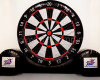 Raak de roos met een flinke trap! Dit opblaasbare dartbord van 4 meter hoog combineert voetbal met het klassieke dartsprincipe.
